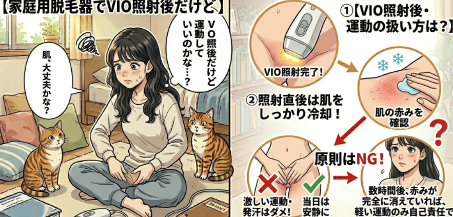 家庭用脱毛器でVIOを照射した後は、当日の運動は基本的に控えるのが安全です。