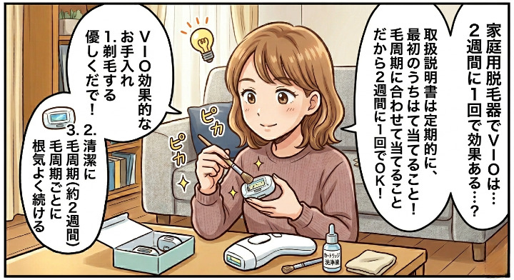家庭用脱毛器でVIOをケアするなら、2週間に1回はかなり現実的で、効果を狙いやすい頻度です。