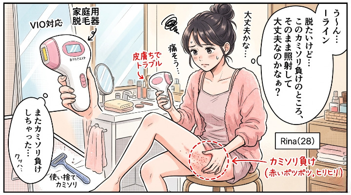 「Iラインを家庭用脱毛器でケアしたい。でもカミソリ負けして赤い。これって照射していいの?」