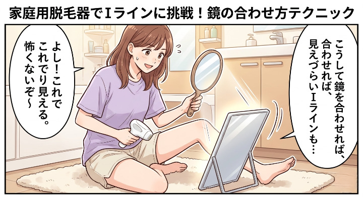 家庭用脱毛器でIラインを安全に照射するコツは、「鏡を正面に置く」のではなく、「見たい面が真正面に映る位置まで鏡と体勢を先に固定すること」です。