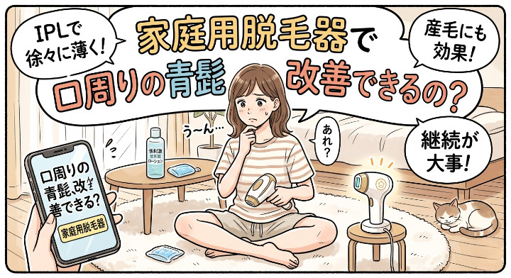 女性の口周りが青髭っぽく見える原因、家庭用脱毛器の効果、正しいやり方、シミがあるときの注意点、失敗しない選び方、今すぐ始めるべき人の特徴まで、最初から最後まで分かるように解説します。