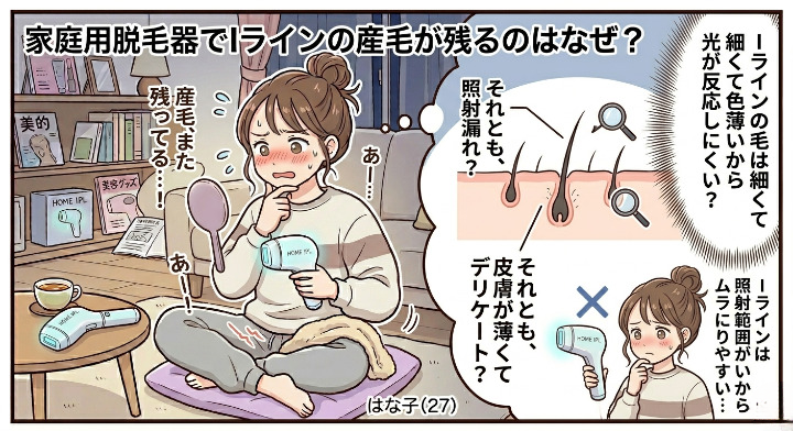 つまり、Iラインの産毛が残るのは、家庭用脱毛器の限界と安全性の結果です。