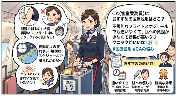 CA(客室乗務員)におすすめの医療脱毛はどこ?忙しくても通いやすく、清潔感を最短で整えられる選び方